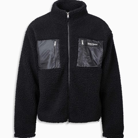 GANT Jakke i fleece, størrelse L, farge svart og blå. Jakken har detaljer i blått stoff på skuldre og lommer. Egnet som ytterplagg for menn.