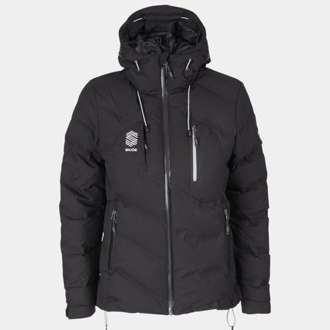 Bergans Stranda hybrid down woman jacket i svart farge, størrelse M. Jakken er fylt med dun og Primaloft Gold Active+ som isolasjonsmateriale og har hette. Utstyrt med Recco reflekssøkingssystem.