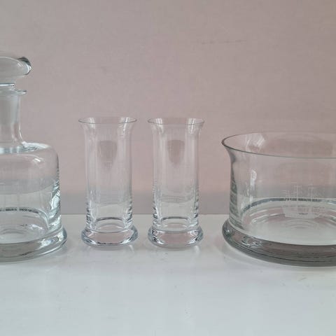 Mindre fat: Diameter 21 cm, høyde ytterst i kanten 2,5 cm. Vekt: 362g.
