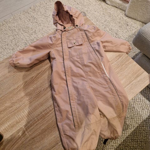 Kuling barnedress i størrelse 80 for jente, laget av polyester. Dressen har hette og er rosa med mønster. Passer til barn i denne størrelsen.