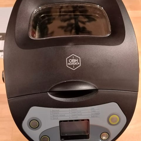 Brødbakermaskin fra I OBH nordica. Veldig lite brukt, men en liten skape på eltekroken, selges derfor veldig billig. Blir dessverre ikke brukt her hjemme.