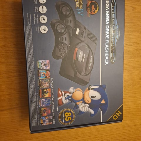 Selger en klassisk konsoll med 208 retrospill (ser ut til å være mest Sega Genesis-spill).