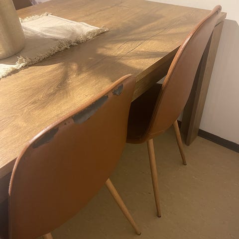 Som bilde. Ser at den ene stolen må limes med trelim. Legger inn bilde.
