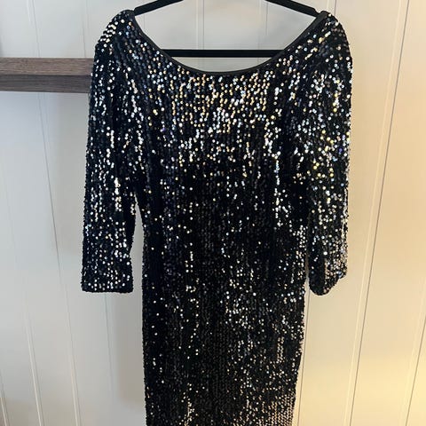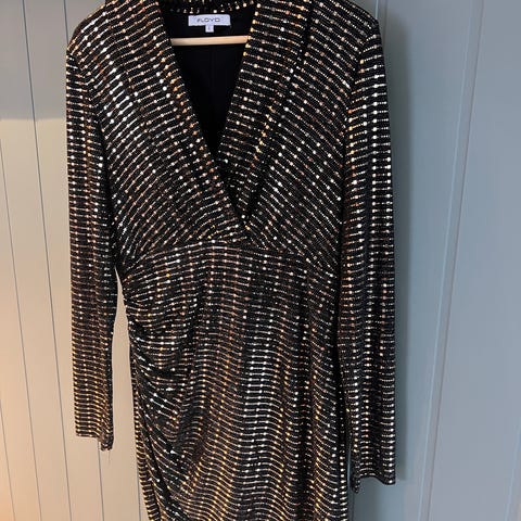 Ellos festkjole i størrelse M med flerfarget paljettmateriale. Kjolen har lang erm.