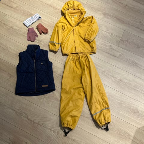 Lindberg Lekhyttan regnsett i størrelse 120 for jente. Sett består av jakke og bukse i rosa med mønster. Laget av polyamid materiale. Jakken har fleecefôr, avtagbar hette, elastiske partier for bedre passform, refleksdetaljer og justerbare mansjetter. Buksen har fleecefôr, refleksdetaljer, elastiske og justerbare fotstropper samt forsterkede partier. Vanntett med 8000 mm vannsøyle og sveisede sømmer, sertifisert etter Oeko-Tex 100 standard.