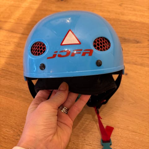 Skjøytehjelm eller hockeyhjelm. Passer til små barn ca 1-3 år.