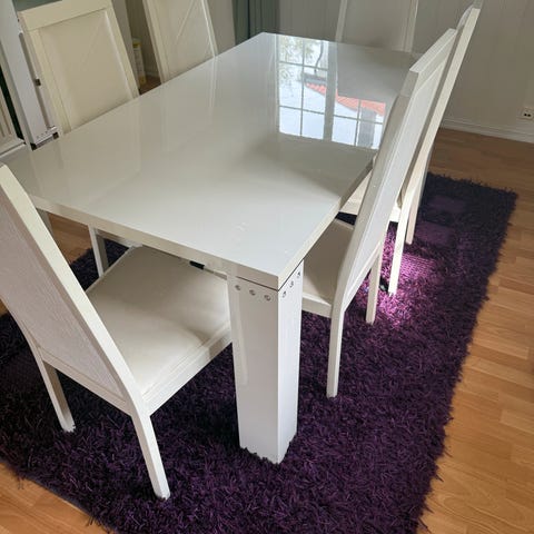 Pent brukt spisestue med benk og stoler. Stått på ei hytte så derfor lite brukt.