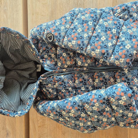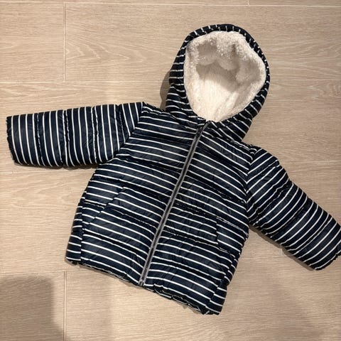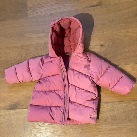 Petit Bateau jakke i størrelse 80, designet for jenter. Jakken er rød og laget av polyester. Den har hette og er egnet for barn.