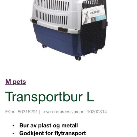 Praktisk, lett transportbur med hjul. Fint å ha til hundeutstilling. Passer liten hund
