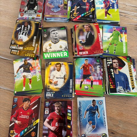 Hei, jeg selger disse to boksene med fotballkort. Det er ikke noe system, bare masse forskjellig. Noe fra kickerz og noe fra premier league og andre steder. Bare å sende melding om du lurer på noe😀