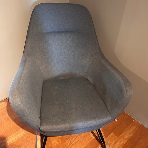Pent brukt stol fra IKEA selges billig. Perfekt å lene seg på, vippe litt eller gynge.