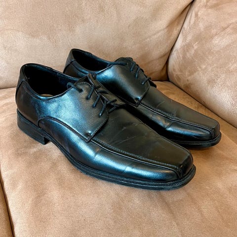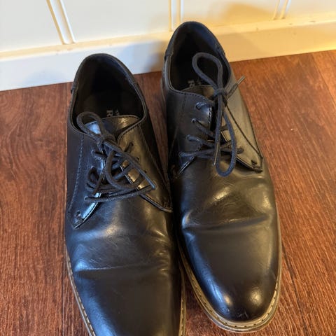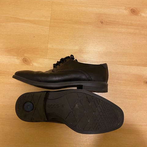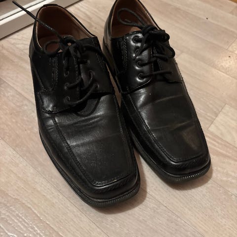 Herresko i størrelse 39. Skoene er laget av svart skinn og har snøring. Passer for gutt. Fra Rossmann of Scandinavia