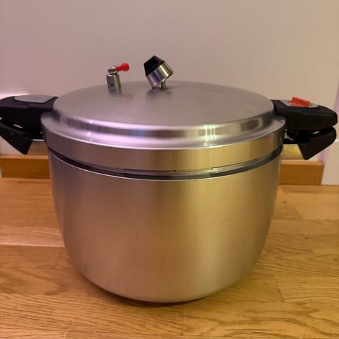 Gryte 28 cm i diameter, ca 9 liter. Romslig og passer til bla kraftkoking. Går dessverre ikke på induksjon.