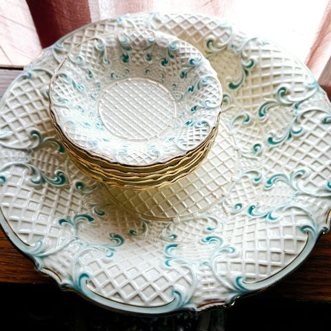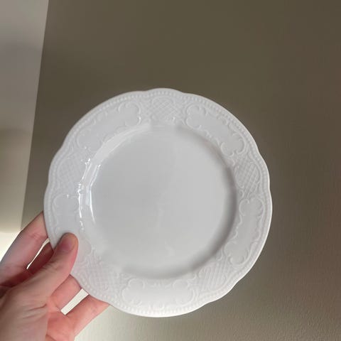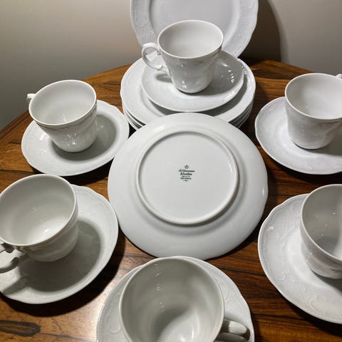 Kaffekoppene av porselen er fra Seltmann Weiden, og de er fra et servise som heter Livorno.
