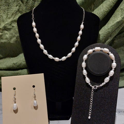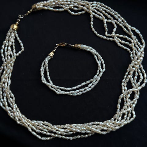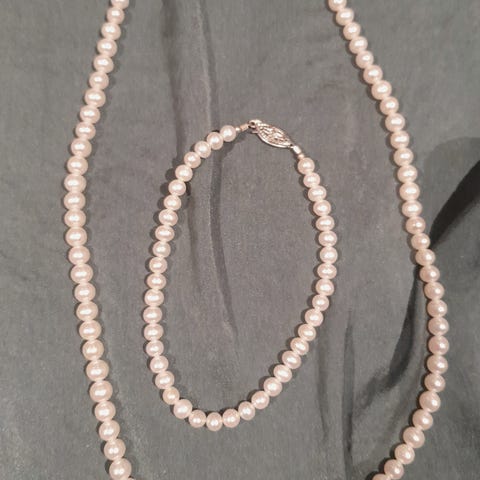 sett med ferskvannsperlekjede og armbånd med forgylte låse
