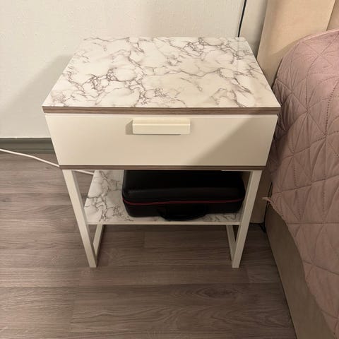 Gis bort. Har lagt laminert marmor film oppå bordplaten