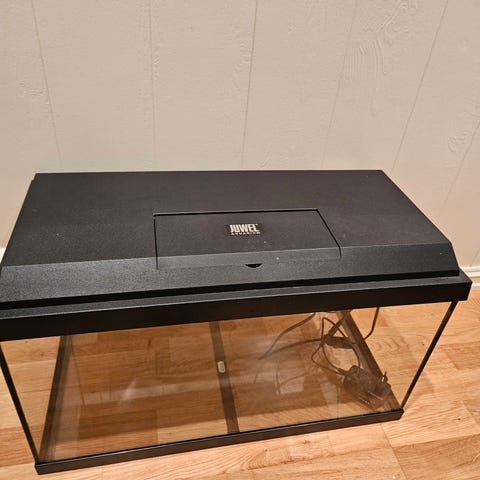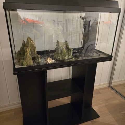 Brukt 54l akvarie selges, godt brukt - alt fungerte når det ble satt bort.