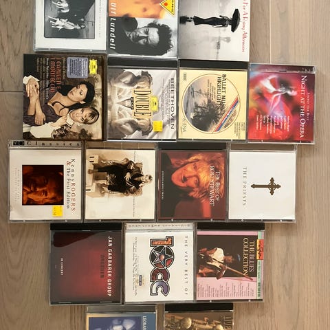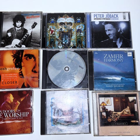 Samling av ulike musikk-CDer i forskjellige sjangre og artister. CD-ene er lagret i originalplast og cover. Passer for samlere eller musikkinteresserte.