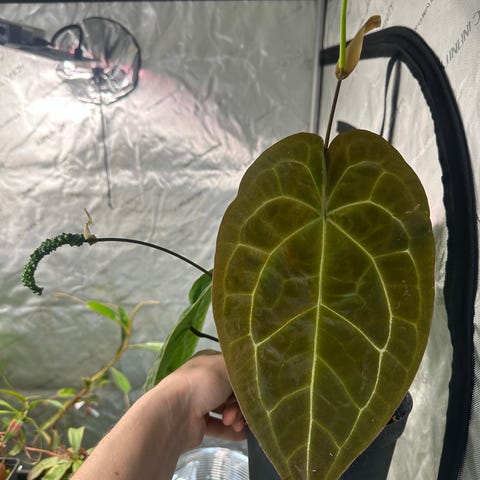 Selger en flott og godt etablert Anthurum Ace of Spades x forgetii som jeg har dyrket fra frø kjøpt av Nordic Plant Diaries i Finland.