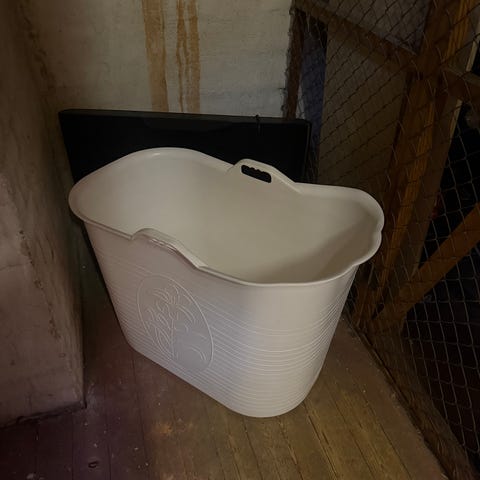 Denne badebaljen for voksne gjør det mulig å nyte et varmt og avslappende bad, selv om man ikke har et badekar.