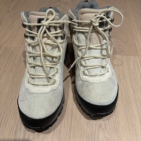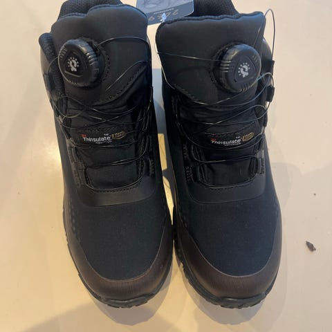 Høye dame piggsko med lisser. Gummisåle med faste pigger og gummipigger for demping. Thinsulate (syntetisk isolerende fiber). Ikke brukt.