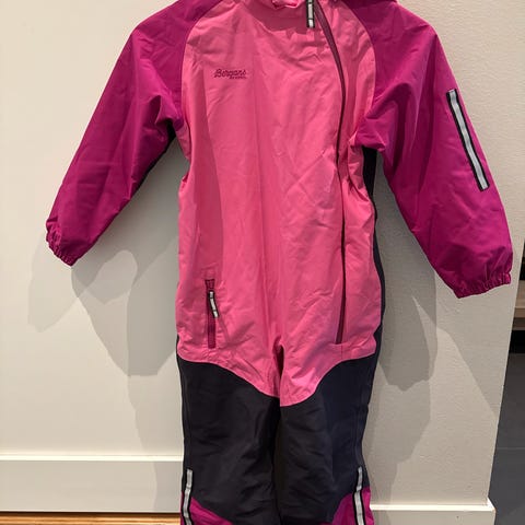 Kjempefin Bergans lilletind barnedress i størrelse 110. Helt super vinterdress. Brukt til et barn. Har normal slitasje i setet og knær, et lite hull på magen men ingen ting å si fo bruken. Den har hette og elastisk midje for bedre passform. Egnet for bruk i kaldt vær.