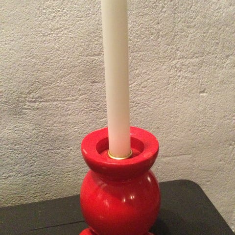 Lysholder Kule til telys, med røde bær, julekuler,gull detaljer, i klar resin.