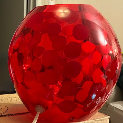 Lysholder Kule til telys, med røde bær, julekuler,gull detaljer, i klar resin. Ny koster ca 460kr