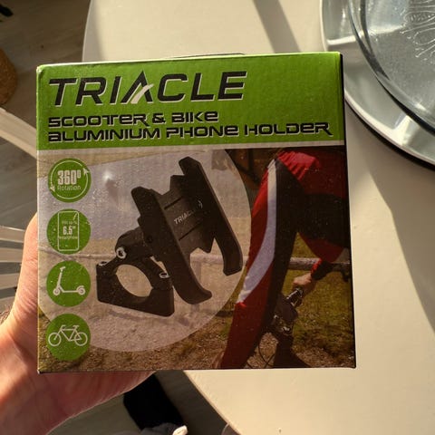 Triacle Scooter & Bike Aluminium Phone Holder laget for montering på scooter eller sykkel. Holderen er laget av aluminium og designet for å sikre telefonen under kjøring.