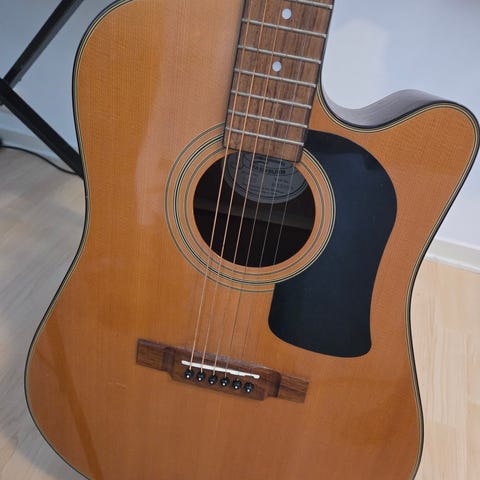 Morgan 12-strengers gitar med naturfarget kropp og sort hodeplate. Gitaren har 12 strenger og en tradisjonell akustisk design.
