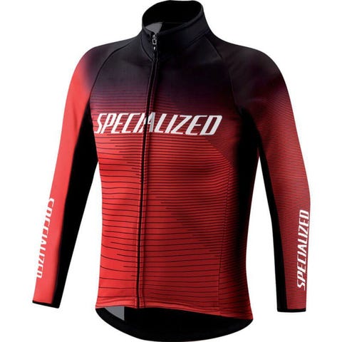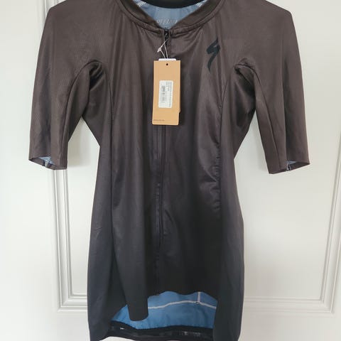 Specialized Sykkeltrøye i blå og grå/svart farge. Trøyen har glidelås foran og 3 oppbevaringslommer bak på trøyen
