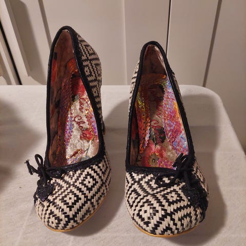 Selger mine sorte og hvite hæler fra Irregular Choice str 39. Noe brukt, kun innendørs. Ca 8cm hæl. Dessverre uten eske. Kan hentes i Oslo, evt sendes hvis kjøper betaler emballasje og porto.