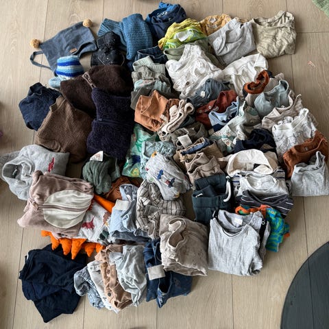 barneklær for gutt i størrelse 80 med flerfarget. Inneholder ulike plagg egnet for barn, laget i forskjellige materialer og farger.