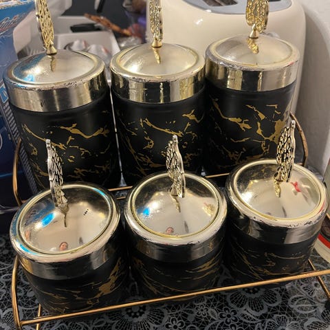Bodum serveringssett i porselen bestående av flere små skåler plassert på et rundt brett. Settet har en hvit farge og er designet for servering av ulike typer mat eller snacks, ypperlig til for eksempel tapas.