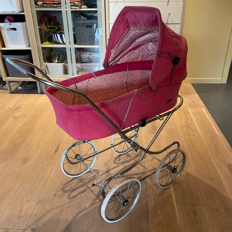 Liten og lett gåvogn i turkis fra merket Stoy. Må hentes