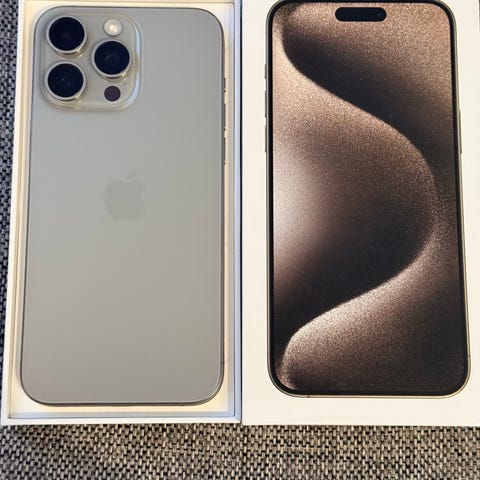 Selger iPhone 15 Pro Max 512 GB i fargen Natural Titanium.
