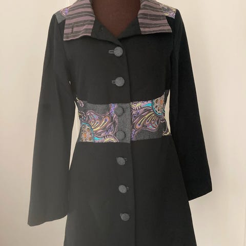 Laget i 100 % bomull med lett polyesterfôr. Modellen har hette, dekorative knapper og fine broderidetaljer som gir et unikt uttrykk.
