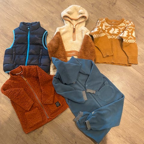 Pent brukte klær, noe helt ubrukt. Bjørnis genseren har noe nupper, men kan fint fikses med nuppefjerner.