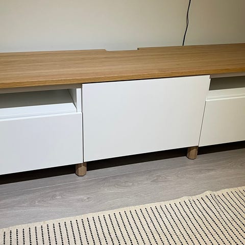 Tv benken består av 2x benker på 180cm bredde (3,6m total)