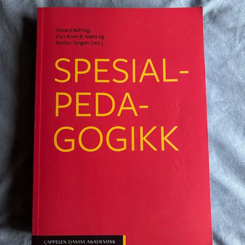 Spesialpedagogikk, Edvard Befring, Kari-Anne B. Næss og Reidun Tangen (red.), 6. utgave, 2022. Pen stand, men markeringer i enkelte deler av boka.