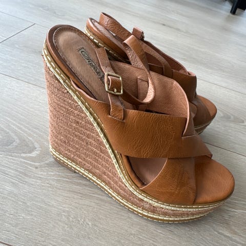 Semsket, brunt skinn. Kun brukt to ganger. Nypris ca 1700,-.