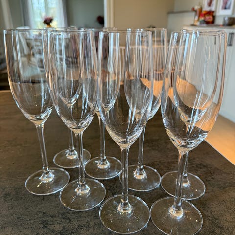 Et sett med to champagneglass til salgs. Aldri brukt. I veldig god tilstand.