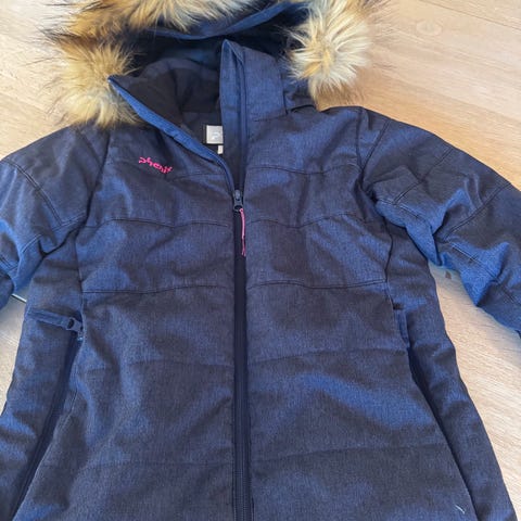 Lys grå Phenix alpin skijakke til jente i størrelse 6-10 år (122-140) selges. Jakken er meget pent brukt og har ingen synlige merker eller rifter. Hette og fuskpels kant kan taes av. Jakken har flere funksjons detaljer og er av super kvalitet.