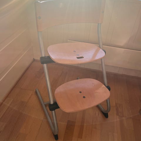 Stokke høy barnestol i lyserosa farge. Trenger en vask, men fremstår ellers som ny og har svært lite slitasje. Har også en i lysegrønn.