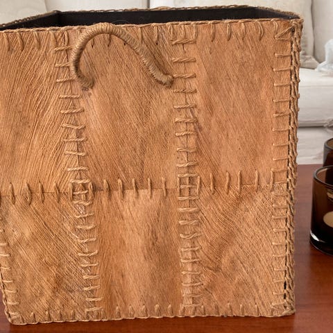 Mellomstor kurv i flettet naturmateriale. Kurven har 2 hanker og kan brettes sammen. Har et hull på undersiden, og selges derfor billig. Har fortsatt masse bruksverdi igjen, og er veldig dekorativ