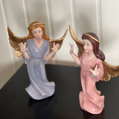 To engler som har vært kjøpt til julepynt, kostet til sammen 1500 ny pris. Den største er 29 cm høy og den minste er 21cm. Selges da de ikke brukes. Selges samlet, kan sende mot frakt.