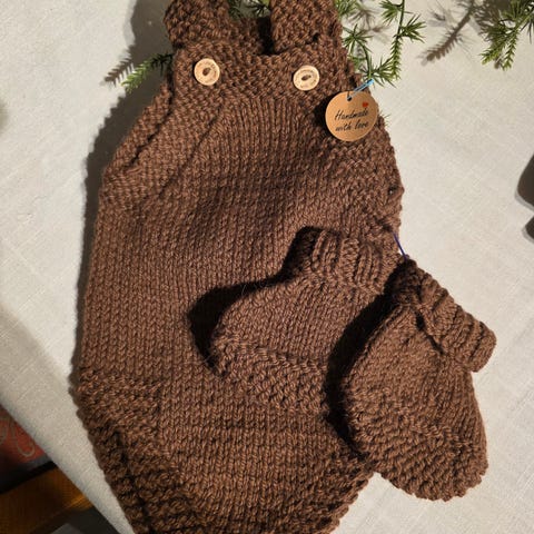 Helt ny hjemmestrikket romper. Passer ca Str 62. Laget i ull.