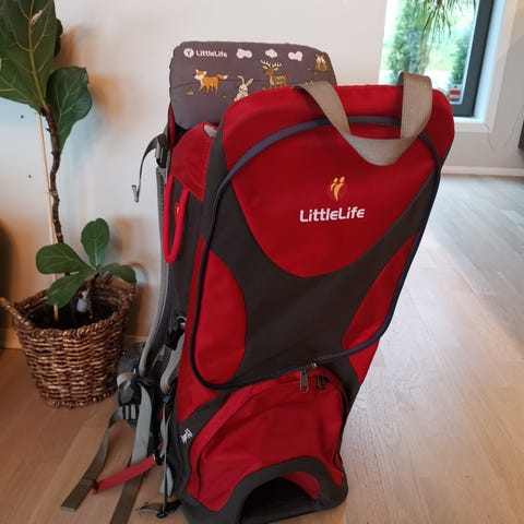 Bæremeis selges billig. Den ser helt ny ut. Avtagbar liten sekk på som er lett å ta av og på med glidelås. Gode justeringsmuligheter som gjør at meisen også passer til små barn. Tåler opp til 20 kg. Men kan ordnes slik at den bare veier 2 kg. To lommer på, til f.eks. nøkler og mobil. Flaskelommer og gode refleksdetaljer. Ser helt ny ut, og kun brukt ett par ganger.