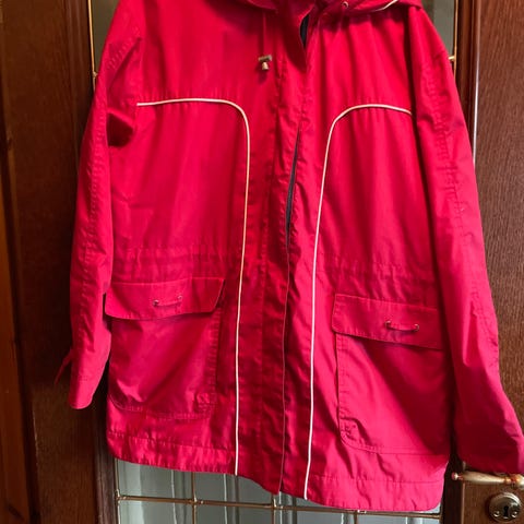 Rød vintage Moncler jakke til dame - estimert str. S. God stand, noen merker som vist på bildene - selges derfor billig. Passer bra til alpene og afterski/apres ski. Fint alternativ til Fusalp. Fin stil for Grisch.