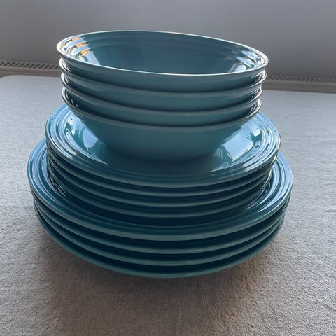 Le Creuset krus i flere farger, laget av keramisk materiale. Flere andre merker.